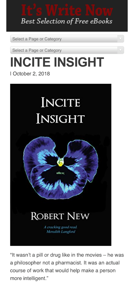 Marketing for indie/small press authors is an interesting process. Unlike with traditional publishers nearly the entire onus is on the author. For me, I’ve recently run my first giveaway for Incite Insight. This was always going to be loss-making since I wasn’t charging for my book. I spent about A$90 on a few mailing lists to advertise that the e-book was free for five days. I had over 1200 downloads of the book on the first day, when the bulk of the advertising was sent out, and over 1600 by the end of the five days. The giveaway has so far netted me several new reviews on Amazon and Goodreads, many more ratings, and a lot more adds by unique users on Goodreads. I’ve had several new kindle unlimited borrows of both Movemind and Incite Insight since the promotion, so it seems to have generated interest in my writing in the short term at least.