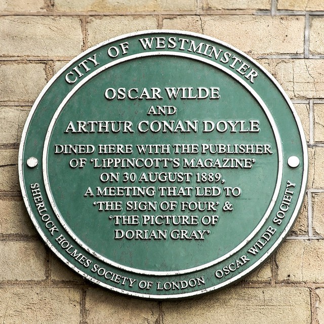 An American, Joseph Marshall Stoddart (managing editor of the American publication Lippincott’s Monthly Magazine), met with Oscar Wilde and Sir Arthur Conan Doyle, at the Langham Hotel in London on 30 August 1889. Their dinner was described as a “golden evening” by Doyle.